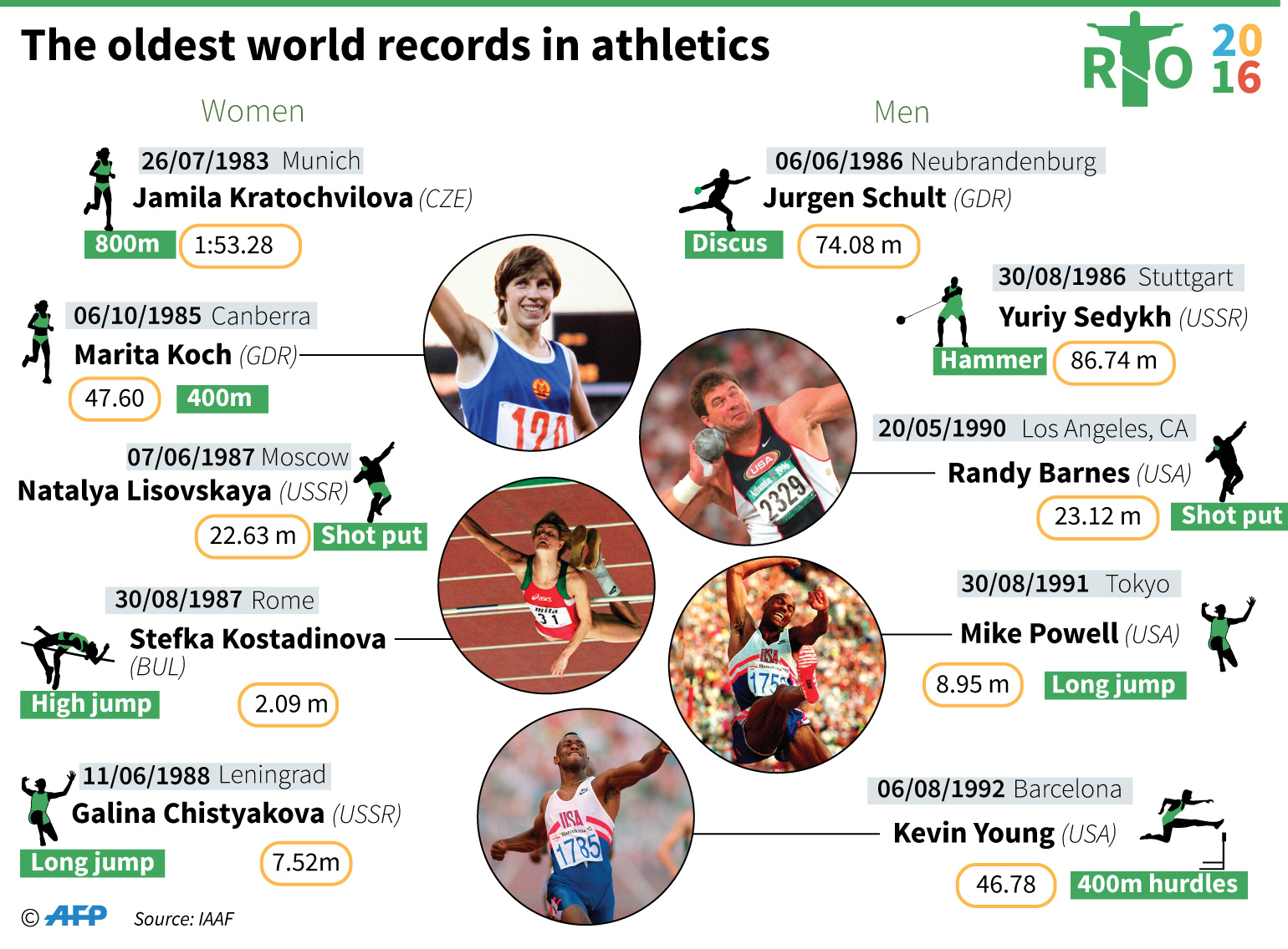Oldest Track And Field World Records . Find out which records usain bolt still owns,. Jarmila kratochvílová holds the oldest record for the. 56 rows learn about the criteria, history and current status of world records in track and field, road running and racewalking. the women's 800m world record of 1:53.28 set by jarmila kratochvilova in 1983 is the oldest track and field record in history. the oldest track athletics world record is in the women’s 800m set by jarmila kratochvilova in 1983. 11 rows find out the best marks in track and field events at the biennial world athletics championships since 1983. 25 rows find out the current olympic records in various athletics events, such as track, field, road and combined events. the title of oldest record in track and field is shared by two women.
